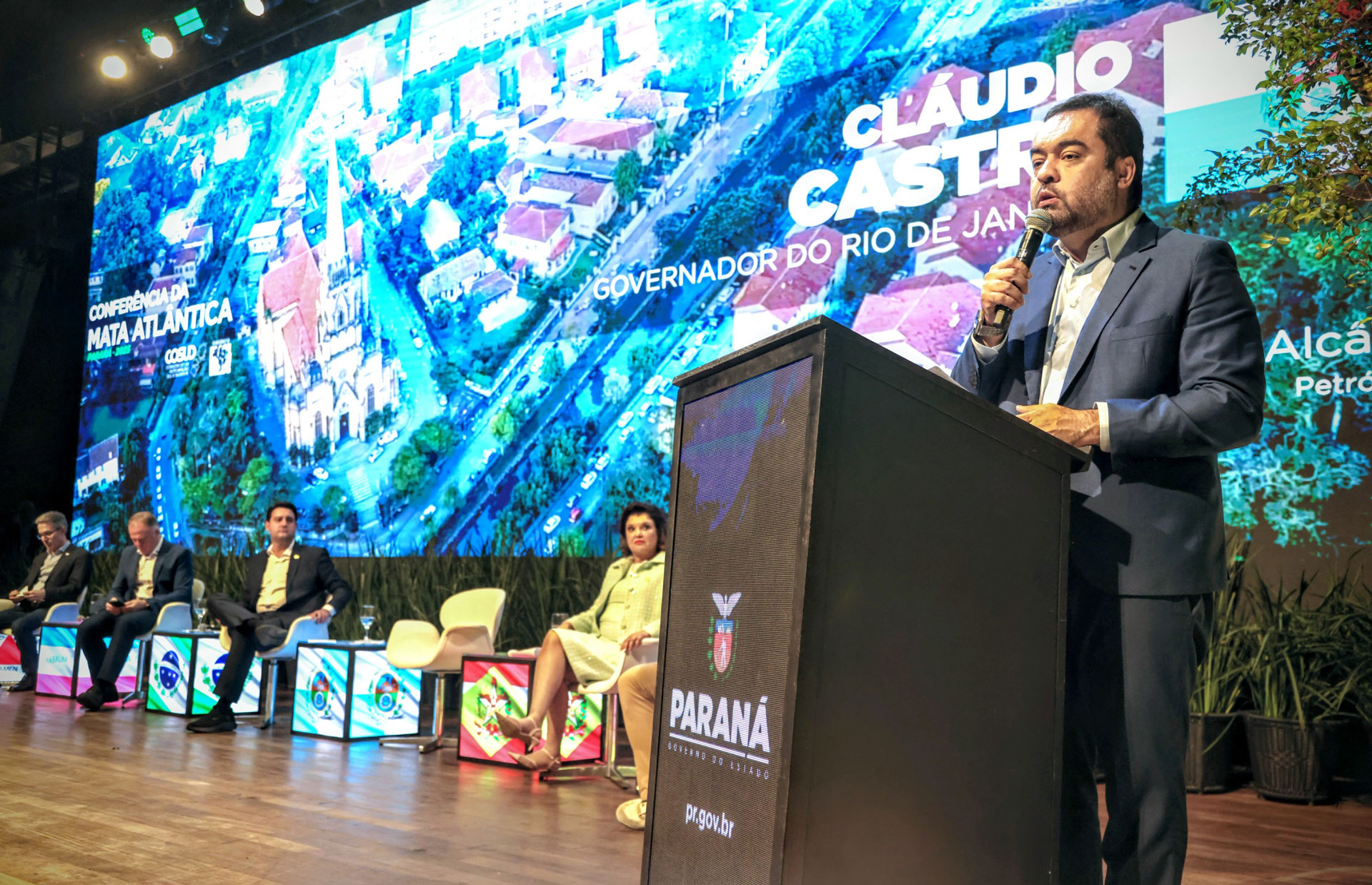 O governador Cláudio Castro tomou posse, em 19 de agosto deste ano, como presidente do Consórcio de Integração Sul e Sudeste (Cosud), em Curitiba, no Paraná. A cerimônia aconteceu durante a Conferência da Mata Atlântica, onde acontece também 13ª edição do Cosud, que abordou o meio ambiente e a sustentabilidade.